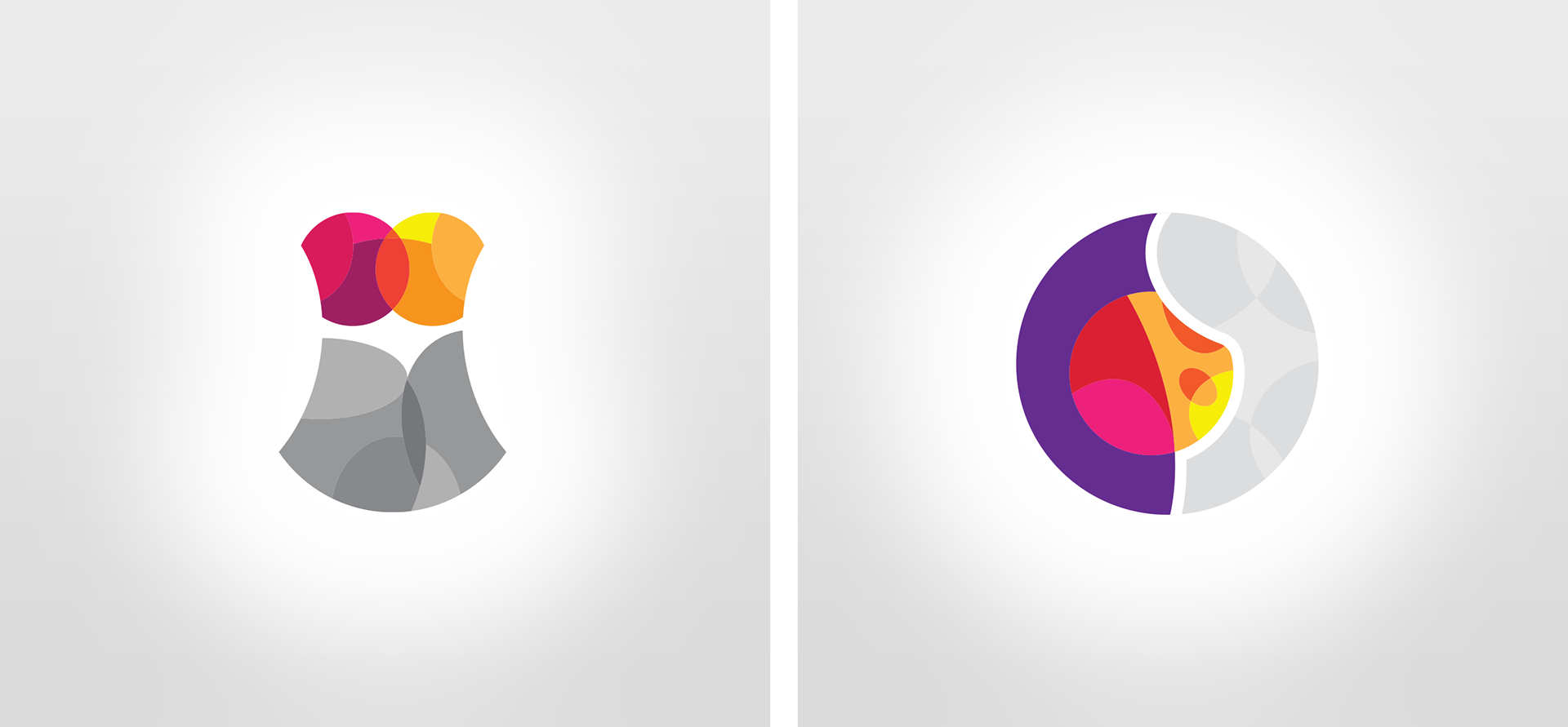 Below are initial brand mark concepts showing explorations of color, iconography and the female form.