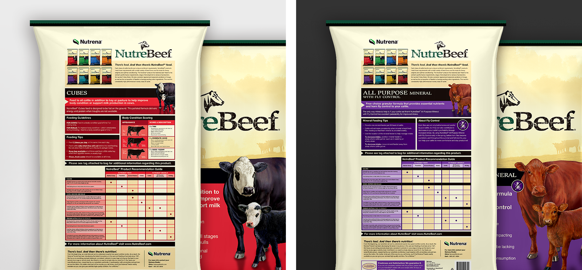 NutreBeef is a high-quality line of feed that covers a wide rage of cattle development stages, performance requirements and phases of production. Cargill Animal Nutrition (CAN) was looking to simplify the product line, refresh its branding and point-of-sale materials.