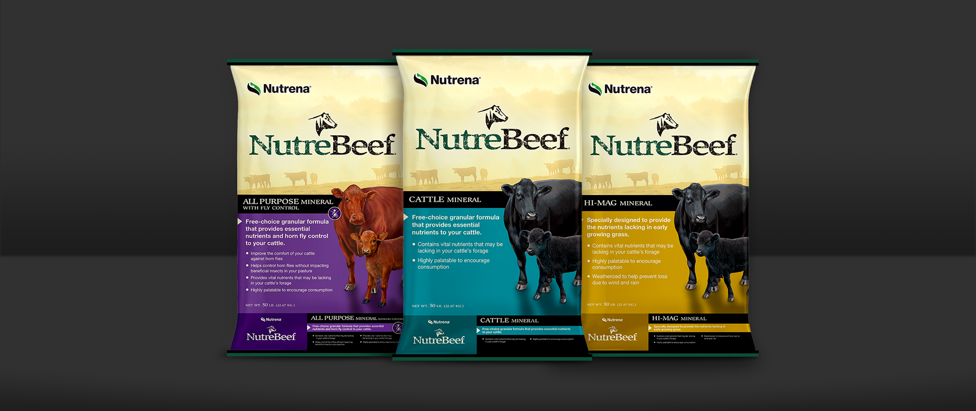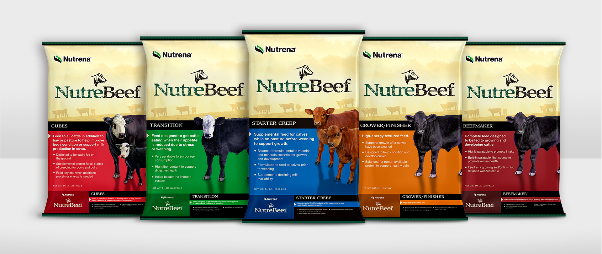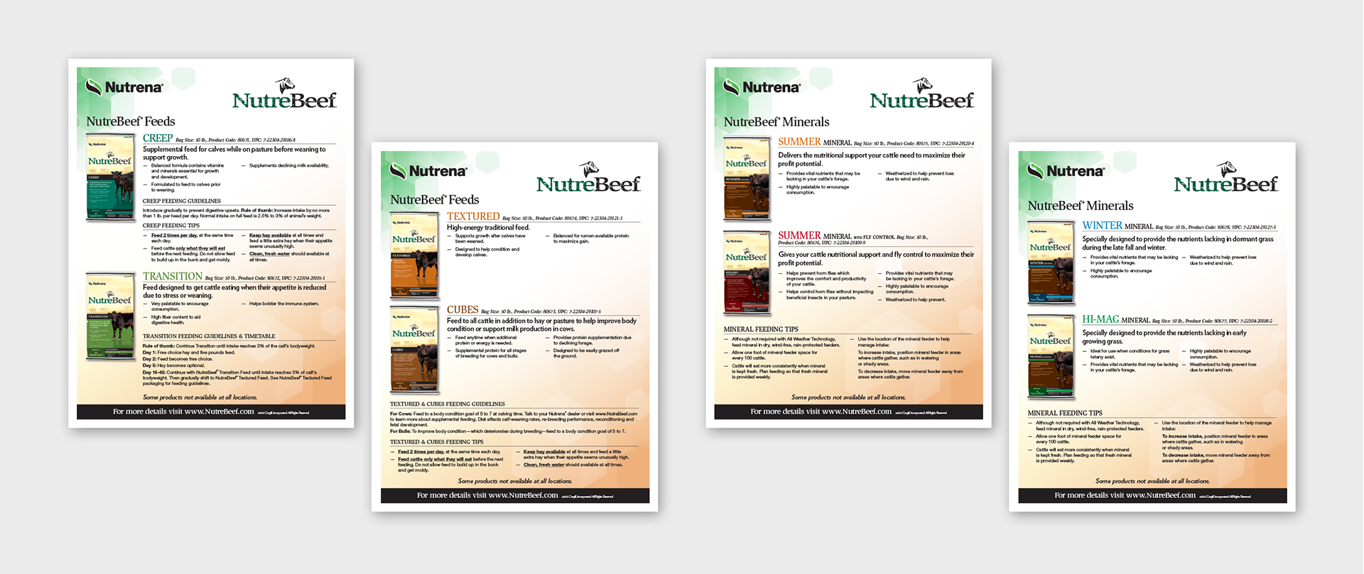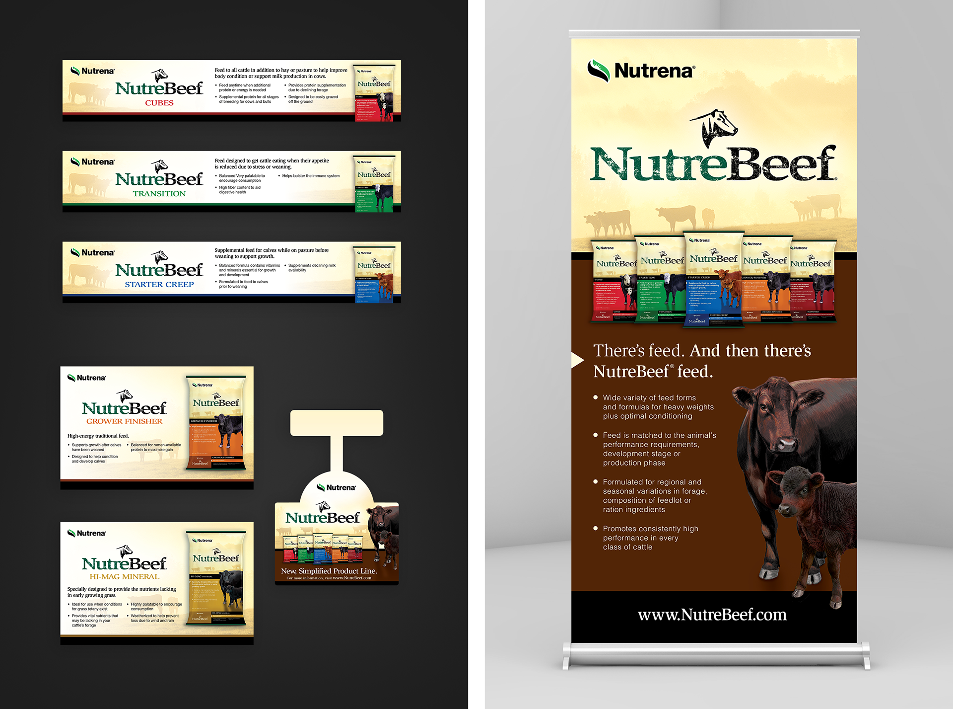 NutreBeef is a high-quality line of feed that covers a wide rage of cattle development stages, performance requirements and phases of production. Cargill Animal Nutrition (CAN) was looking to simplify the product line, refresh its branding and point-of-sale materials.