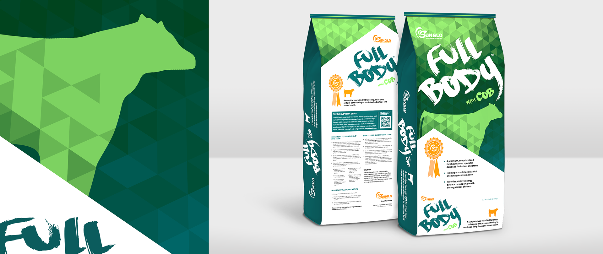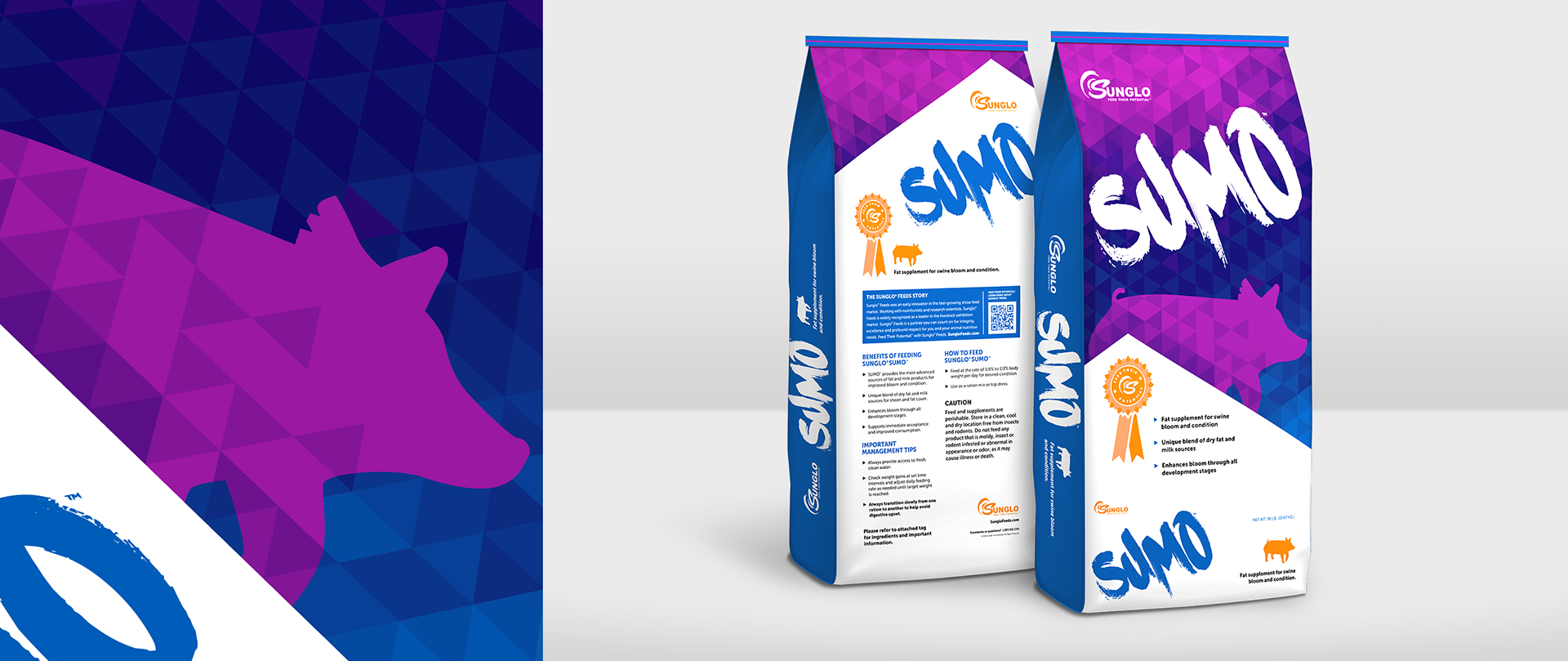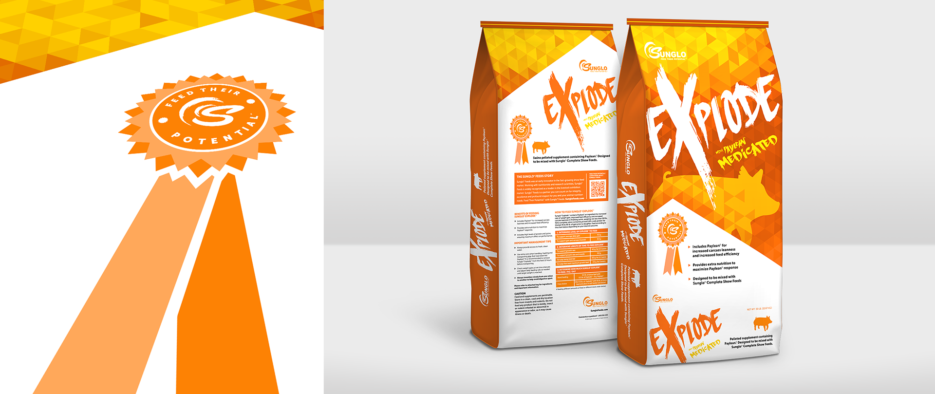 Cargill Animal Nutrition (CAN) wanted to refresh their premium show feed and supplement brand, Sunglo. The goal was to have the brand make more of a splash in the market — appealing to a younger audience with a cooler aesthetic. The winning design features a bold color palette, simple animal silhouettes, and facet-style backgrounds which make Sunglo really standout.